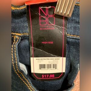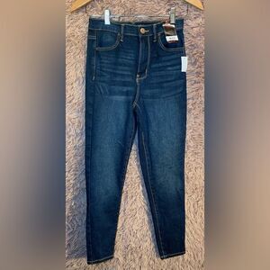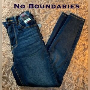 NWT No Boundaries S:7 Destructed Curvy Skinny Jean Dark BLUE Denim measurements in photos