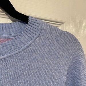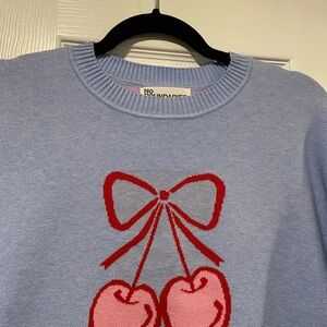 NWT No Boundaries Size S Blue Crew Neck Long Sleeve Soft Sweater Cherries Bow