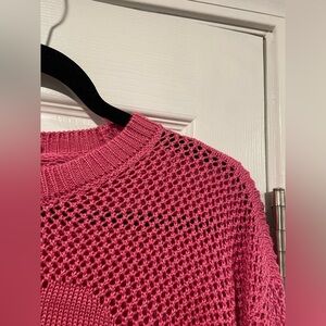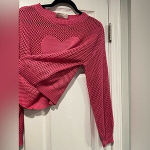 NWT No Boundaries Size XS Pink Mesh Long Sleeve Crew Neck Pullover Heart Sweater