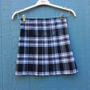 NWT No Boundaries Women Junior XS Black White Pleated Plaid Mini Skirt