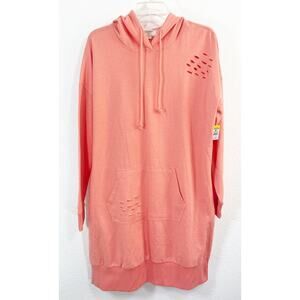NWT No Comment Plus NY LA Womens Peach Distressed Sweatshirt Size 2X.