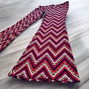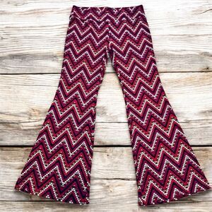 NWT No Boundaries S Red Black Chevron High Rise Pull On Stretch Flare Pants