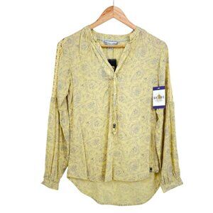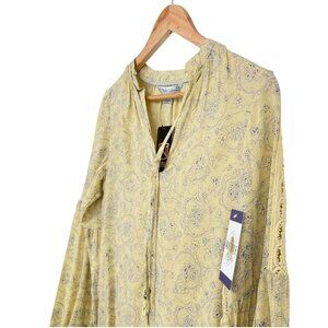 NWT Noble Outfitters XS Shirt Yellow Paisley Peasant Blouse Folklore Lace 21007