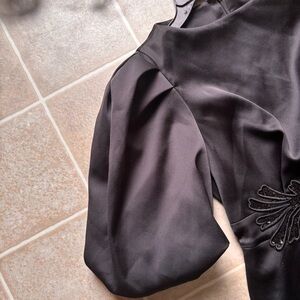 NWT Nocturne Black Puff Sleeve Maxi Dress with Sequin Embellishment
