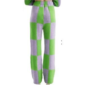 NWT Nocturne Womens Wide Leg Knit Checkered Print Size XL Comfy Cozy Retro Rave