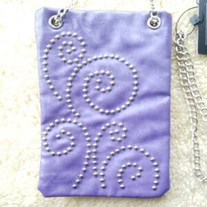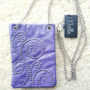 Noelle purple vegan leather scroll studded chain handle cross body bag purse