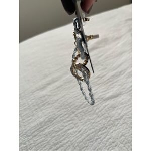Three Tiered hoop earrings with white, gold, and diamond rhinestones.