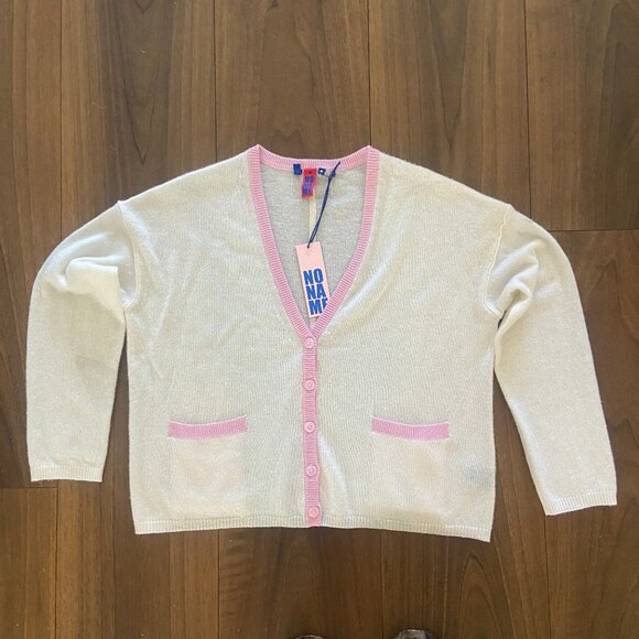 Super cool & chic NWT Noname / Naked Cashmere white cardigan with pink trim. Size Medium. Boxy fit. Dry clean only.