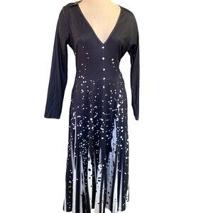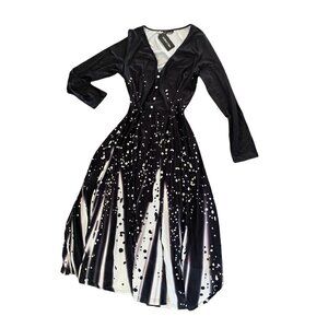 NWT Noracora Long Sleeve Swing/Fit & Flare Dress Black & White Maxi L #4D