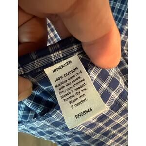 New with tags Nordstrom 1901 size XL blue plaid button down shirt. Measures 26” from armpit to armpit and 31” long.