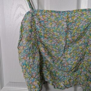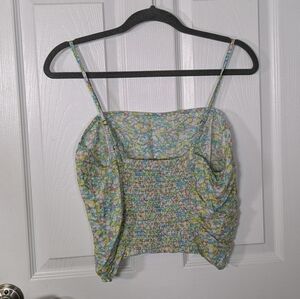 Maisey Print, BP, Women, Woman, Women's, Size M, Size Medium, Crop Top, Cropped Top, Green, Blue, Multicolor, Ditsy Floral, Floral Print, Cami, Sleeveless, Camisole, Tank Top, Summer, Spring, Ditzy Floral, Fun, Girlie, Girly, Fun, Cute, Pretty, Feminine, Smocked Back, Dainty, Square Neck, Nordstrom, NWT, New With Tags, New, Rayon, 100% Rayon, Pleated, Pleat, Pleating, Ruched, Ruching, Yellow, RN 58665