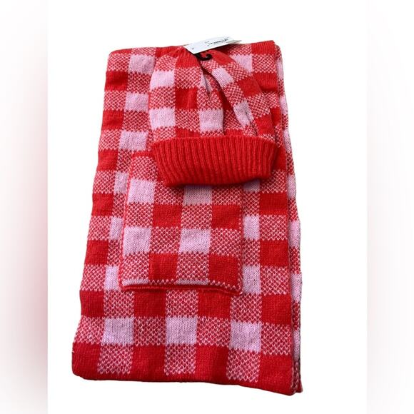 NWT Nordstrom BP. Red/Pink Checkered Scarf and Hat