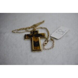 NWT Nordstrom Brass Plum 3 Inch Animal Print Cross Gold Tone Pendant Necklace