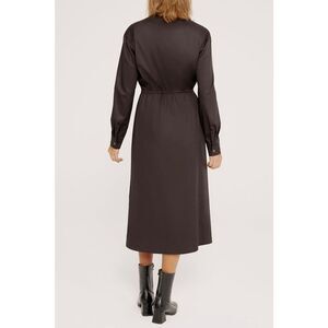 Belinda Dress is a midi cotton dress that features a drawstring waist, long sleeves and a V-Neck. Classic Fit.