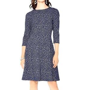 NWT Nordstrom Leota Size 1X Navy Multi 3/4 Sleeve Fit Flare Dress - USA 1L