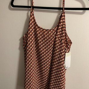 NWT Nordstrom Rack Easy Chiffon Camisole in Pink Dawn-Red Bias Diamond Color, Size Medium.