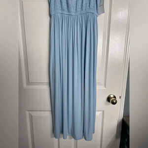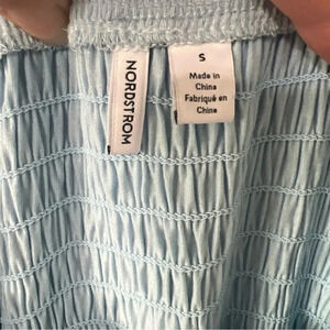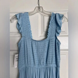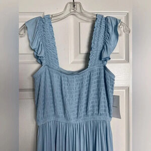 NWT Nordstrom Robin Egg Blue Ruched Maxi Dress Sz Small Blue Dream Wedding Beach. Measurement from shoulder to hem 50 inches. Armpit to armpit laying flat 16.5 inches.