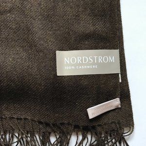 NWT Nordstrom Scarf Shawl Stole Womens Brown Rectangle 100% Cashmere Fringe NEW