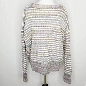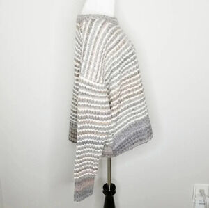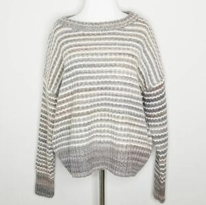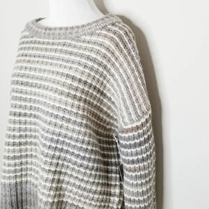 New with Tags Nordstrom Signature grey and white space dye striped chunky knit sweater. Features dropped dolman sleeves and a crew neck.