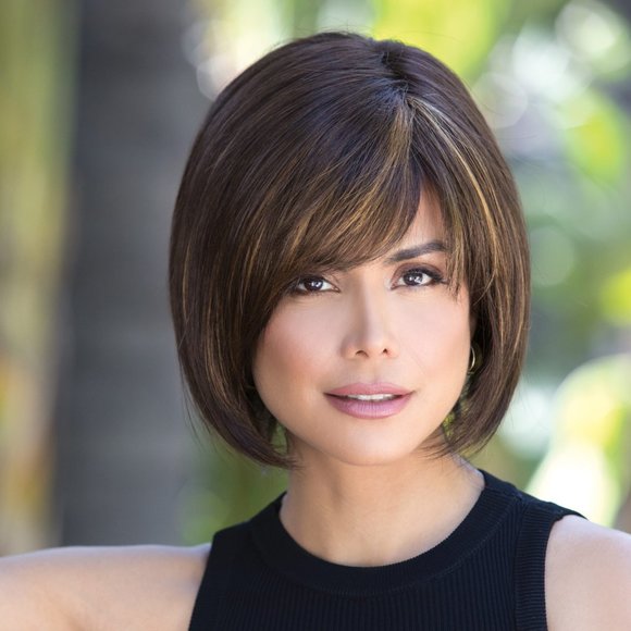 Jolie from Noriko is a short-length synthetic wig. This straight ready-to-wear wig is a perfectly layered modern bob. This sleek bob is a timeless refined hairstyle.