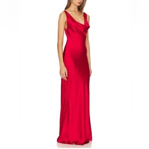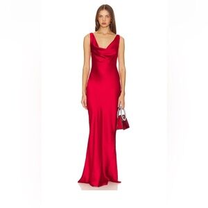 NWT Norma Kamali Deep Drape Neck Gown in Tiger Red