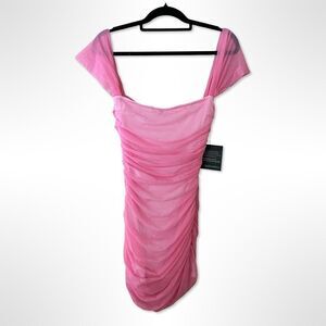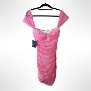 NWT Norma Kamali Walter Dress FWRD candy pink mesh mini cocktail Revolve XL