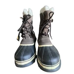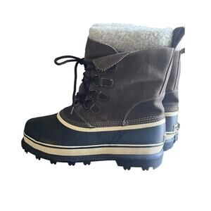 Removable 8 mm felt liner with foil bottom and padded faux shearling collar. Suede upper. Waterproof boot featuring quick D-ring lacing system and rugged, triple-stitched upper-to-shell bottom. Rubber sole.