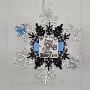NWT Not My Trash Not My Dumpster Ornament Snowflake Raccoon Comedy Humor Holiday Seasonal Decor OOAK Handmade
