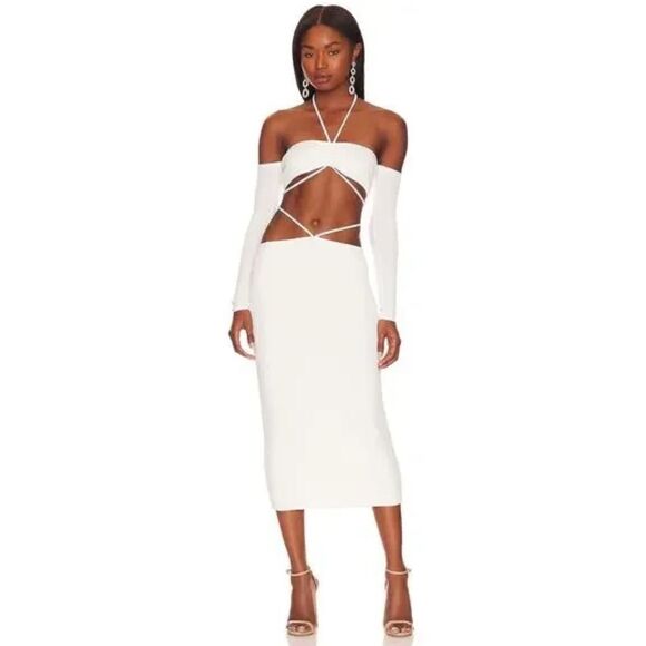 NWT Not Yours To Keep Nikki Strappy Cut-Out White MIDI Dress Small Revolve NYTK