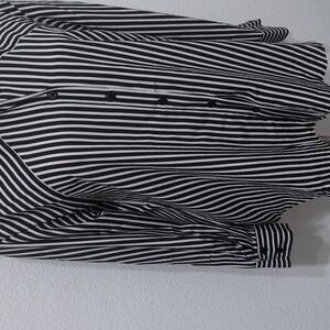 NWT Notations Black And White Striped Long Sleeve Button Down Blouse Size Large