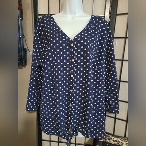 NWT Notations Blue Polkadot Top sz 2X