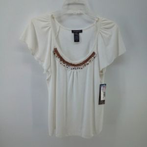 NWT Notations Petite White Stones Flutter Sleeve Early 2000's Style PL Top