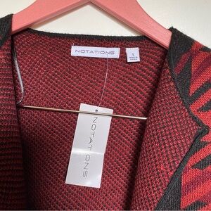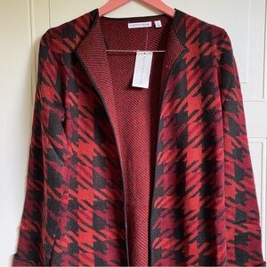 NWT Notations Red and Black Houndstooth Plaid Knit Cardigan Sweater Small