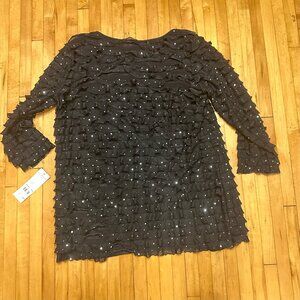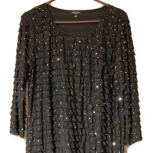 NWT. Notations brand, Black, Sparkly Sequins Top 3/4 sleeves and Ruffles