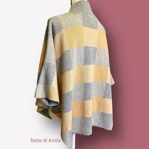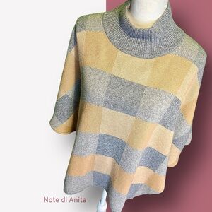 NWT Note di Anita Women's Gray and Tan Checkered Wool Blend Sweater Cape OS