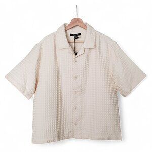 NWT Nova Men Textured Waffle Knit Shirt Men's Button Up Club 3D Boxy Miami M