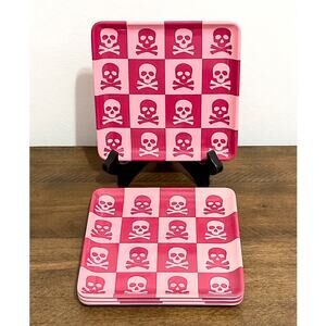 NWT: Novogratz, Pink, Checkered, Skeleton, Melamine, Appetizer Plates (set of 4)