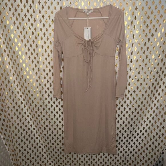 Nude dress with slit and cutout sundress size L Nude tan midi length