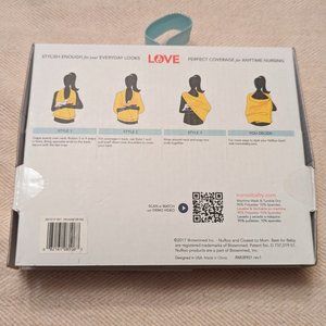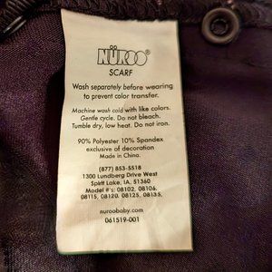 This is a nursing scarf from the company NuRoo. The company calls this "the most versatile nursing cover you'll find" because the scarf has snaps along its width that lets you customize the amount of coverage. There are multiple ways to wear this scarf, including as a cowl-neck scarf, as a sort of short-sleeve jacket, on only 1 side of the body, etc. The packaging, which is included, illustrates some of the most popular arrangements. The fabric, which is 90% polyester and 10% spandex is lightweight, breathable, soft, and slightly stretchy. It also resists wrinkles and is machine washable.