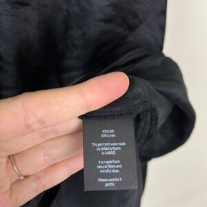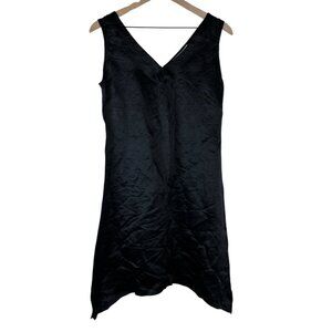 NWT Nuthatch Black Satin Silk Linen V-Neck Asymmetrical Hem Dress