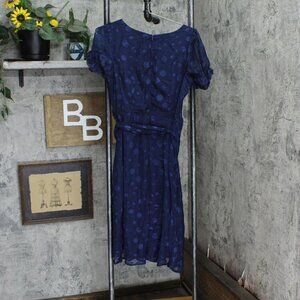 NWT Ny Collection Sleeve Belted Swiss Dot Dress PCCD0396D PS Navy Multi Circle