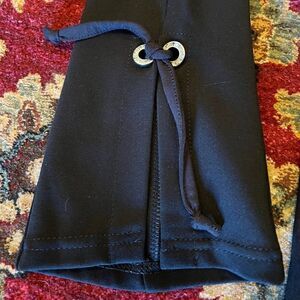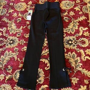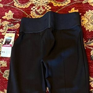NWT!! Made of 68% Rayon, 28% Nylon and 4% Spandex. Pants are slimming with a wide elastic waistband that measures 12.25" laying flat and unstretched. These have a 9.5" rise, 28" inseam. Machine washable.