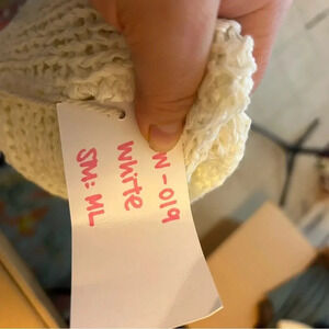 Brand new with tags. Gorgeous white knit hooded swim cover dress. WOMENS size medium/large. There is a tiny pull on front (pictured).