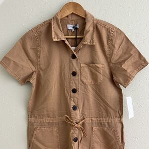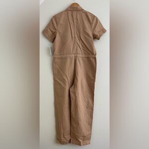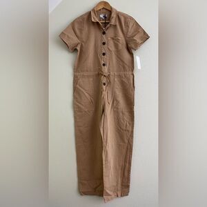 NWT OAT New York Cotton Drawstring Waist Cargo Jumpsuit Tan Brown Size S