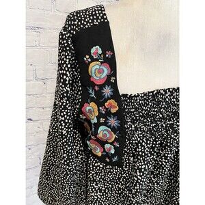 The NWT ODDY embroidered Floral top tunic blouse in size Large offers a stylish and versatile option for women. This Bohemian flowy blouse features a square neckline, long sleeves, and a colorful embroidered floral pattern, making it perfect for various occasions such as casual wear, workwear, or even for travel. The relaxed fit and polyester material ensure comfort and easy styling for any season. With its unique design and brand, this top is a great addition to any wardrobe for those looking for a fashionable yet effortless piece. 20 inches pit to pit and 29 inches long. Smoke free home.