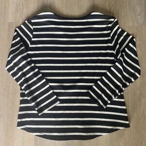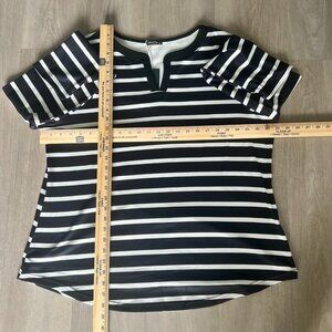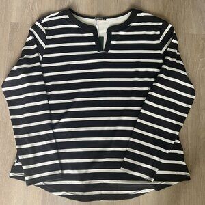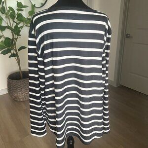 NWT OFEEFAN Womens Black White Striped Long Sleeve Tunic Shirt Top XXL Casual