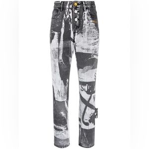 Designated Laboratory of Fun, Off-White's AW21 collection comes with a structure-driven approach, reflecting Abloh’s training as an architect. Constructed from cotton, these tapered trousers come with a graffiti pattern, part of a collaboration with Pablo Tomek.