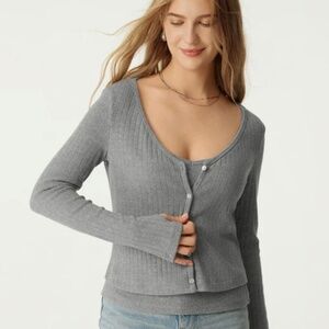 NWT - OGL Wide Rib V-Neck Cardigan - Deep Red