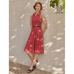 Features: Polo neckline, Flowy circle skirt, Inseam pockets, Removable bra pads