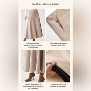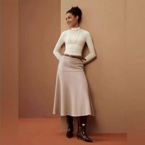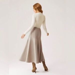 A standout piece in your wardrobe, our Wool-Like Flared Maxi Skirt features a flattering silhouette that adds elegant movement to your outfit. It falls with the perfect amount of drape to maintain its flared shape. The invisible zip ensures a seamless, sleek finish, while the maxi length means its equally wearable as workwear and casualwear. Super versatile, it can be styled as the base for a range of looks with everything from sneakers to heels. Maxi length Invisible zip fastening Kindly note that there are no liner shorts With an appearance similar to wool and a feel as soft as cashmere, this super-soft blend is both comfortable against the skin and made to last. It falls with the perfect amount of drape while maintaining its flared shape and has a hint of stretch too. Comfortable and durable Hint of stretch Soft to the touch Body: 45% Viscose 35% Polyamide 20% Nylon Fabric Weight: 22 OZ Care: Dry clean only. Thank you for choosing this piece! Once you receive it, a light steam or gentle iron will help bring out its natural softness and high-quality feel, ensuring it looks perfect every time you wear it. Enjoy the comfort and elegance it brings to your wardrobe!